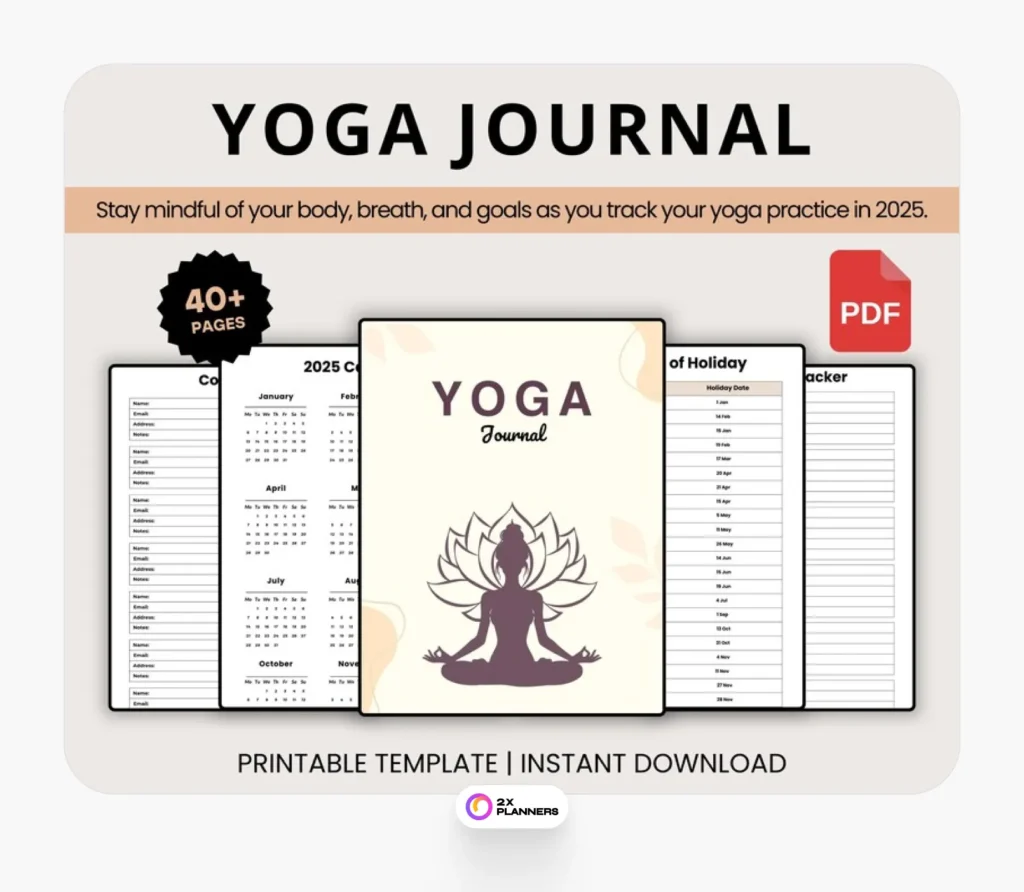 Elevate your yoga and meditation practice with this all-in-one Digital Yoga Journal. Plan routines, track 30-day yoga and 5-week meditation challenges, log poses, moods, and reflections, and chart your personal yoga journey. With over 11 printable pages in A4, A5, and US Letter, this undated planner adapts to your schedule—print, write, and reuse anytime. Perfect for home practice or on-the-go, it keeps your sessions consistent, mindful, and organized. Instantly downloadable, it’s a convenient digital tool that turns every yoga session into a mindful, reflective, and intentional ritual.